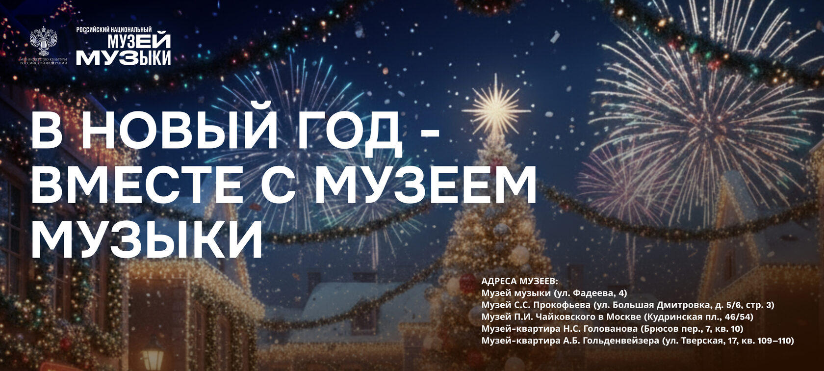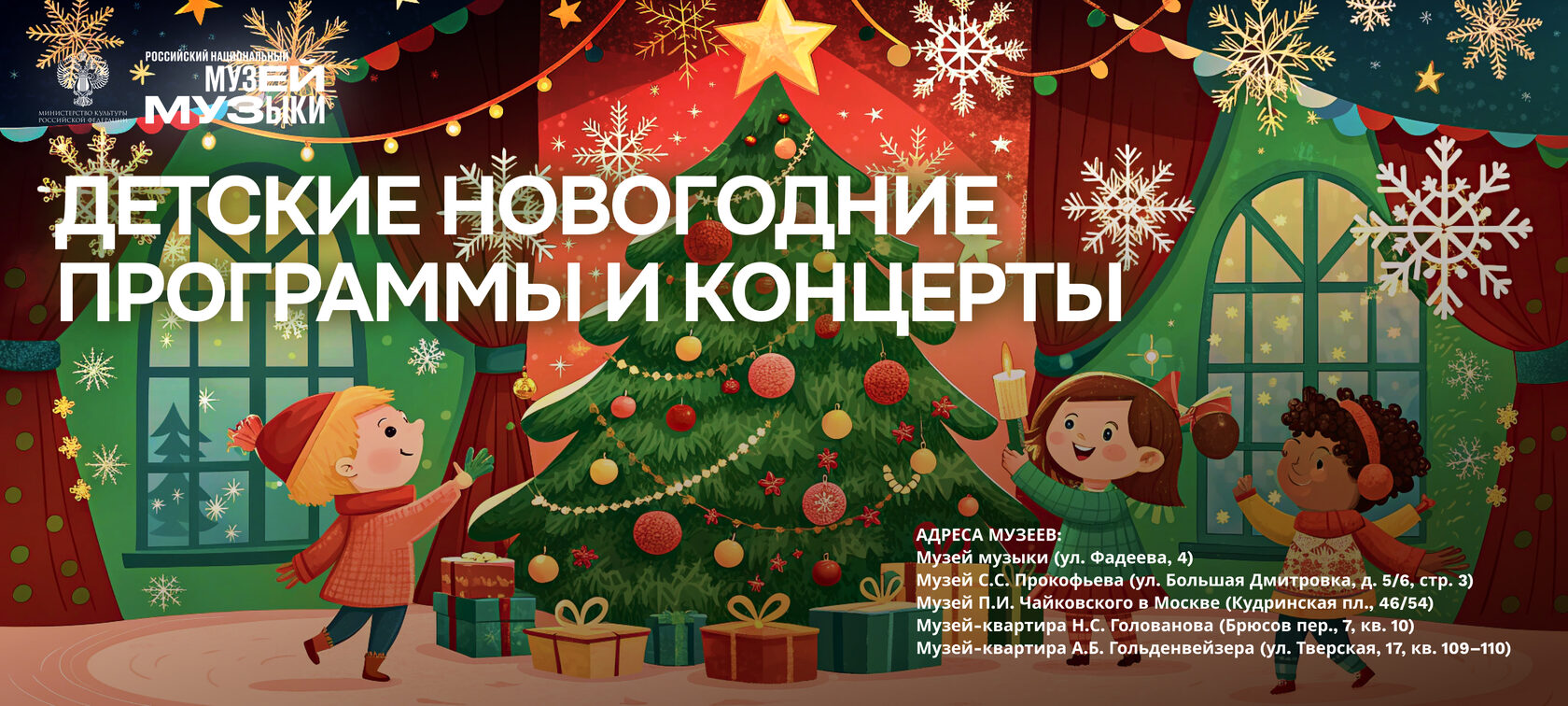 С 16 декабря 2025 по 12 января 2026 года Российский национальный музей музыки приглашает на новогодние программы! Вас ждут интерактивные программы, мастер-классы, спектакли и концерты для всей семьи