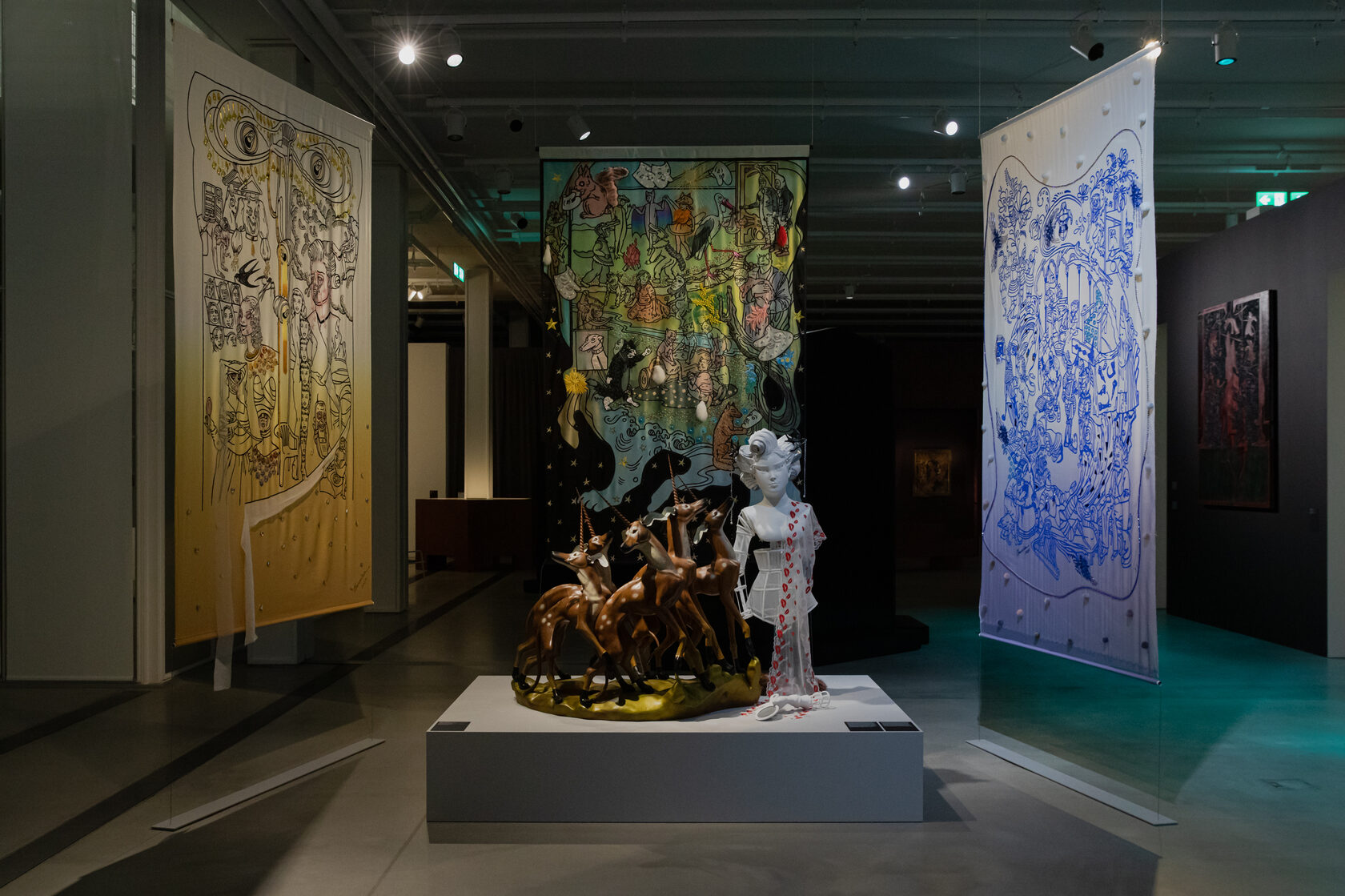 В экспозиции показана живопись и графика классицизма, академизма и модерна, русские иконы, готическая скульптура и современные произведения: инсталляции, скульптуры, гобелен, видео-арт. В их числе полотна Александра Иванова, Льва Бакста и Александра Бенуа, а также новые работы Алексея Громова, Дани Пирогова, Тани Пёникер и других художников. Авторы переносят темы, волновавшие людей в Средние века, в наше время, интерпретируют важные символы той эпохи и сюжеты о конце света. Так раскрывается влияние прошлого на визуальную культуру настоящего: от оформления фэнтези-саг до компьютерных игр и мемов.
