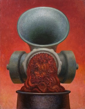 Центральная тема его творчества – мир вещей, причем мир самодостаточный. Жизнь своих живописных объектов Гросицкий показывает через их уязвимость и страдания. На выставке также представлены графические работы художника. Графика для художника становится лабораторией. Именно в графических работах он собирает из осколков быта странные механизмы, которые хочется назвать организмами — художник, будто алхимик, пытается создать новую форму жизни.