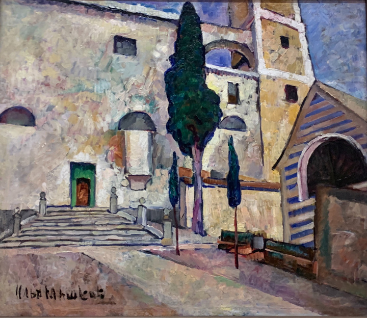 Вот уж чеховский домик в Гурзуфе не писал только ленивый, а у Машкова, согласитесь, самый такой реально «чеховский». И Мясницкая – так Мясницкая, уютная и незыблемая. И зимняя Москва – холодная, своя. Не говоря уж об итальянских пейзажах (один только акведук в Нерви в долине Валь-Бизаньо чего стоит)! А полотно 1912 года «Новодевичий монастырь» в 1922 году экспонировалось на художественной выставке в Берлине.