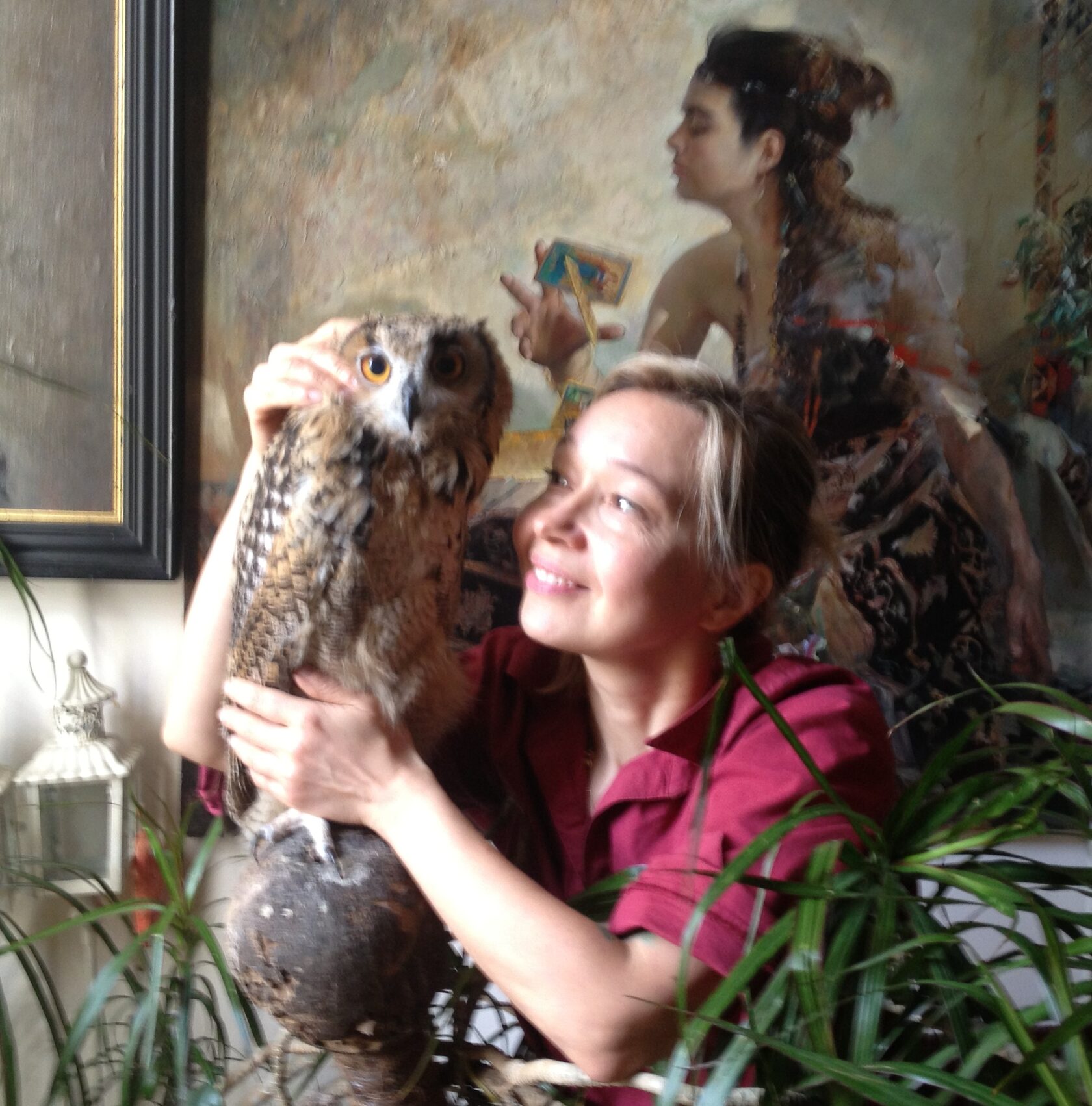Я ее долго не заканчивала, как будто сама там присутствовала и писала все с натуры. Кстати, я там тоже есть, выглядываю из-за занавески, но это как бы взгляд из нашего времени.
