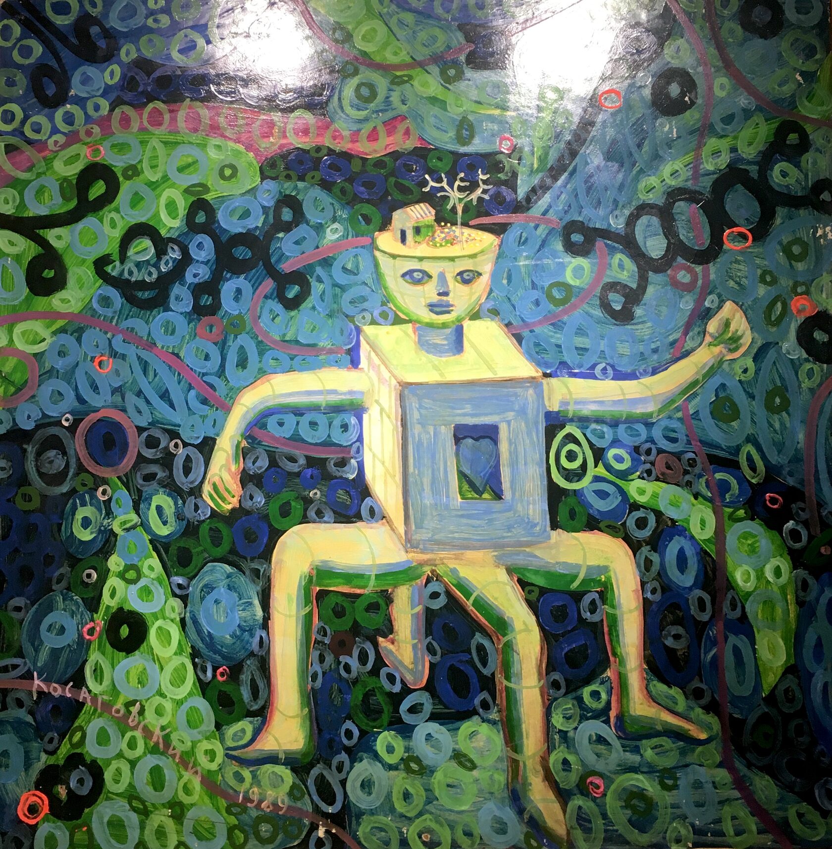 «Смыслопередача. Диалог» - проект галереи ART MAISON и объединения современных художников М.О.Х, созданного в этом году. Как сформулировали сами участники, «ключевая идея проекта – выявление глобальных взаимосвязей и взаимопроникновения исторических периодов через построение художественного диалога между ярким представителем советского неофициального искусства Юрием Косаговским и художниками объединения М.О.Х, работающими в парадигме сегодняшнего дня». Формулировка, без сомнения, мудреная, но если учесть, творчество Косаговского, создателя стиля «рондизм» как явление неординарное, то вступить в негласный диалог с таким многогранным мастером (он и музыкант, и авангардист, и сценарист, и поэт, и прозаик) и обменяться с ним своими мыслями… что ж, художникам это должно быть интересно.