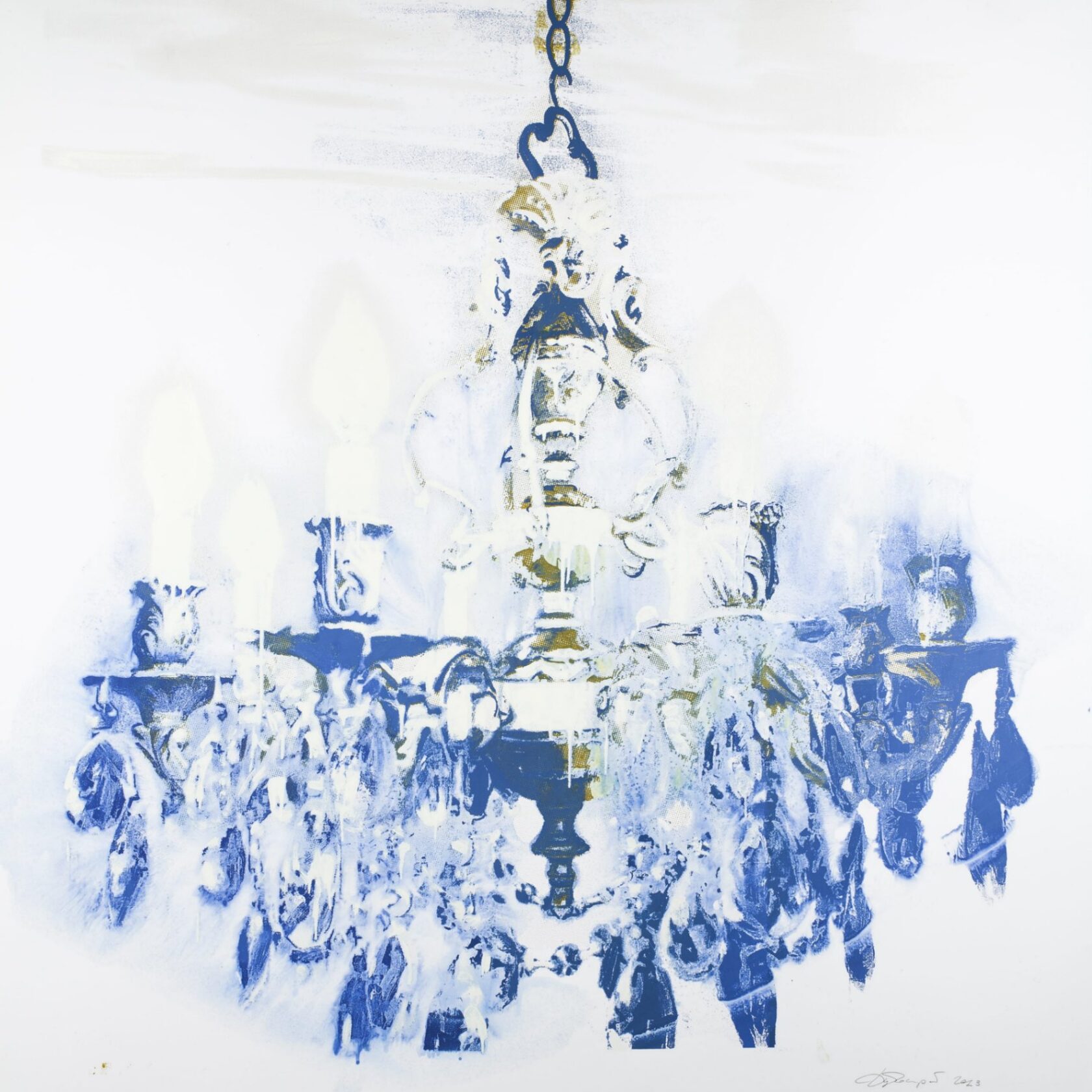 Этой выставкой Галерея ПиранезиLAB открывает кабинет печатного искусства в ЦСИ Винзавод. В камерном пространстве первым проектом станет рассказ о печати в практике художника на примере шелкографии и офорта. Центральная работа выставки – лист из серии «Свет под водой» — образ люстры, своеобразный атрибут советского прошлого, погружённый в воду. В отличие от основного тиража, здесь люстра «повисает» в пространстве белого листа. Отпечаток, изначально предназначенный для технической сверки цвета, впервые демонстрируется на выставке и обретает статус самостоятельного произведения, обнажая поэтику случайности: естественные подтеки недосохшего слоя, с которым манипулировал автор, соседствуют с классическим орнаментом шелкографской точки.