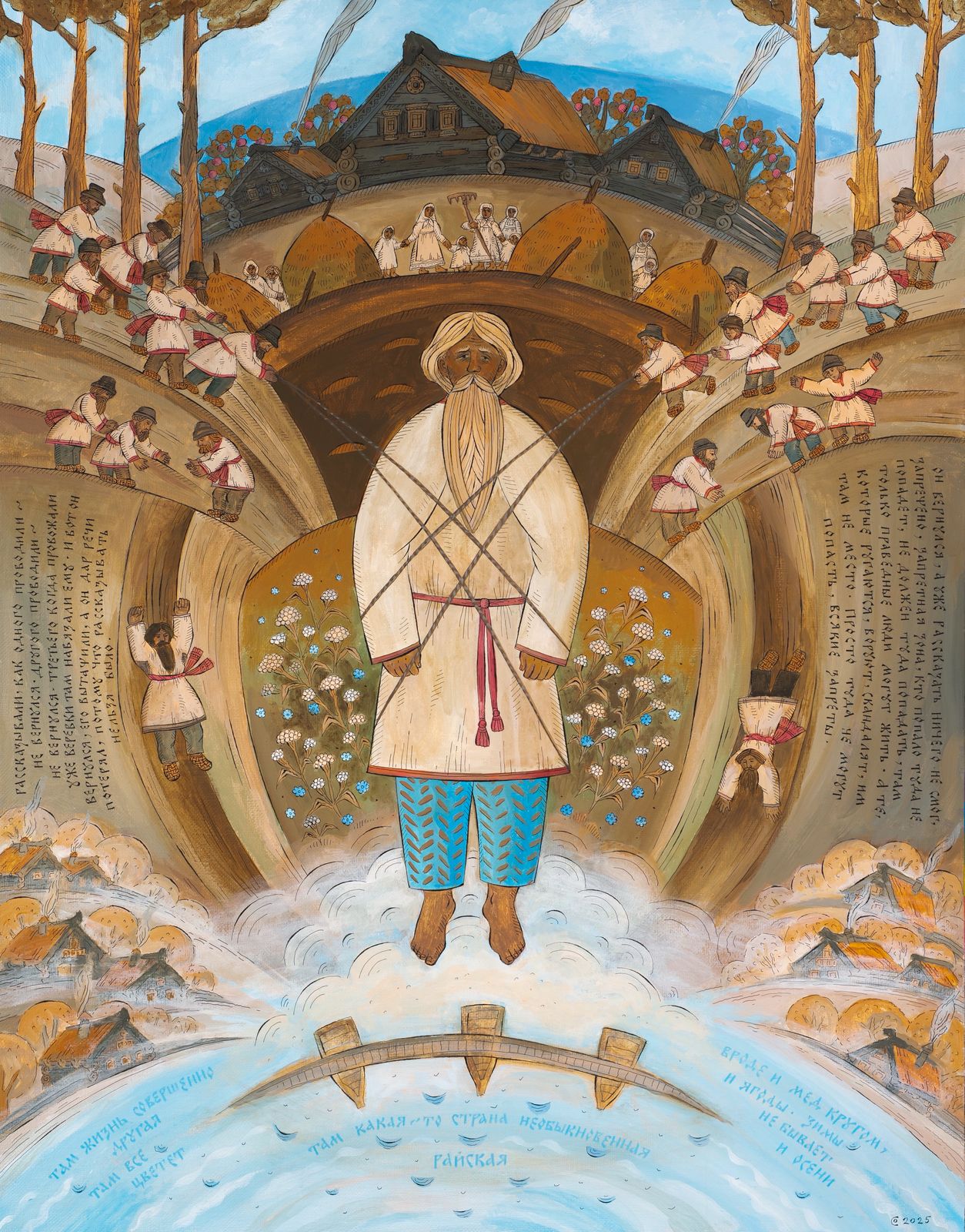 В восьмой раз в усадьбе Муравьевых-Апостолов на Басманной открылась выставка «Трын-трава». Все участники пытались каким-то образом обозначить культурный код через предметы декоративно-прикладного и живописного искусства. Полотно Ольги Соколовой «Возвращение из рая» произвело настоящий фурор. Сюжет основан на летописях 14 века, которые художник скрупулезно изучала в Российском этнографическом музее в Санкт-Петербурге.