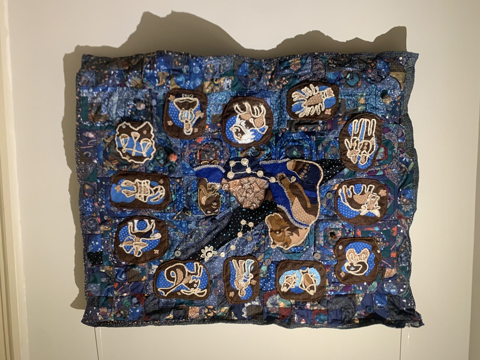 Дань памяти крестьянским женщинам заключена в панно художника Ольги Казминой, на котором такие простые и обыкновенные пряники-козули из лоскутов ткани со знаками Зодиака.