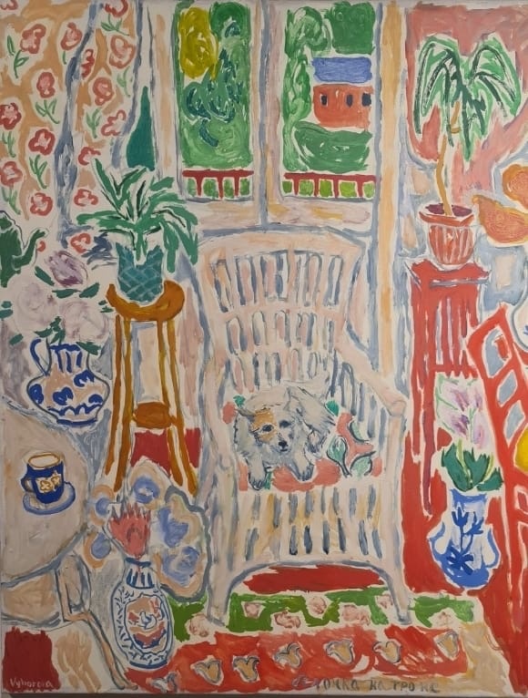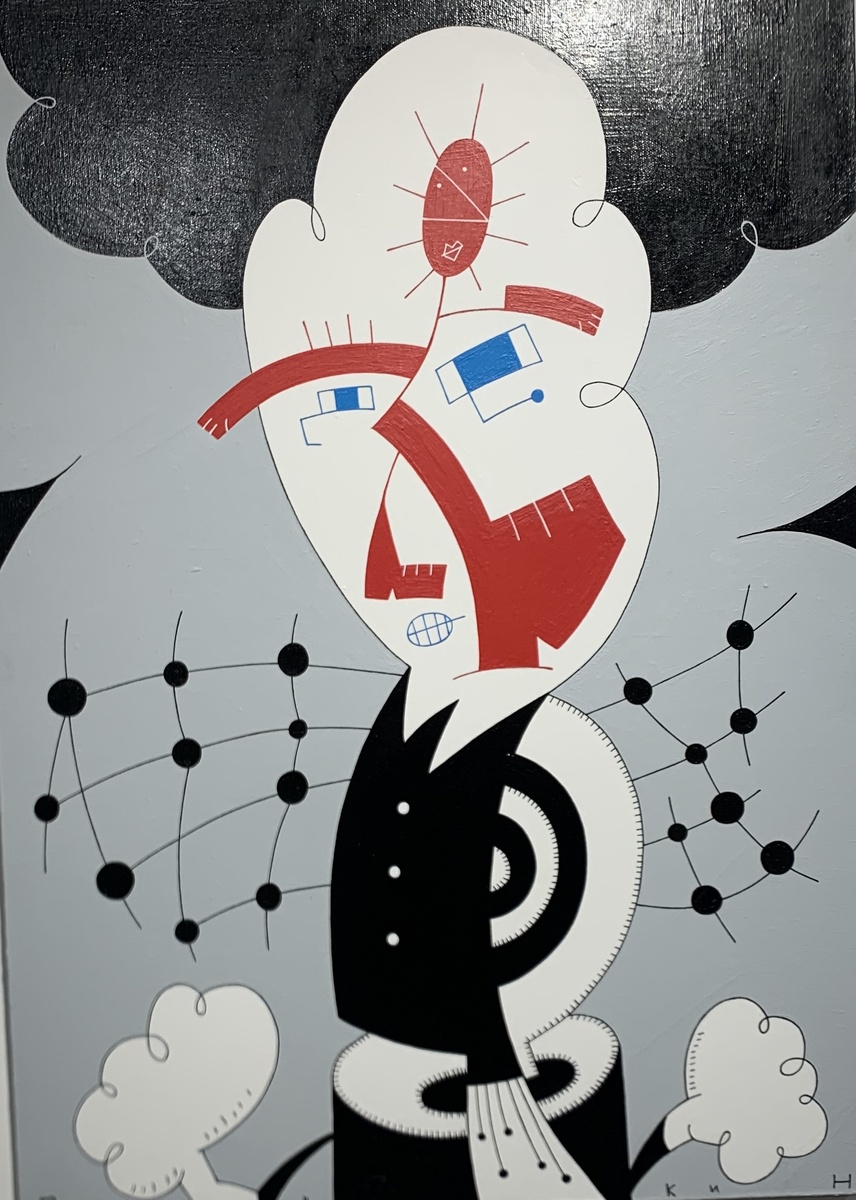 И… пройдясь по первому разу дальше, отыскивая что-то интересное, цепляющее глаз, пришли к весьма неутешительному выводу: многие художники, в поисках своего неповторимого и оригинального, застряли где-то в непонятной ностальгии по импрессионизму и модернизму, впадая в наивное детство, другие западают на Кандинского, Шагала, Пикассо, третьи балансируют на грани фигуратива и абстракции, вцепившись в последнюю как в спасительный круг. И что? Да ничего. Начитавшись порой не сильно грамотных сопроводилок, пошли по второму кругу.
