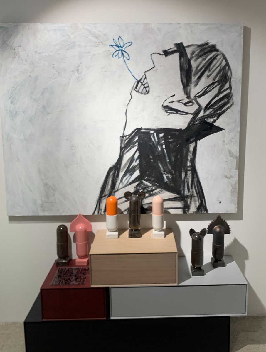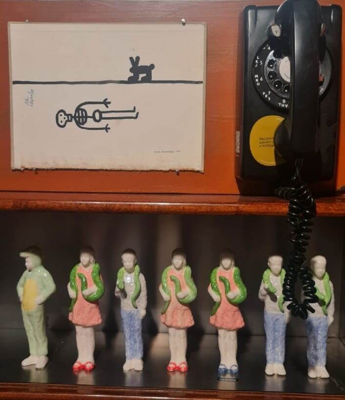 Очень занимательный проект – комиссионку актуального искусства – предложила команда newnow пространства unseen. В этой коммуналке, как и в любой другой, много старого, из другой эпохи (стенки, полки, бюро), но в них и на них как раз-таки все новое – бери не хочу. Так что Саша Бумажный, представитель питерского стрит-арта, рядом с керамикой художника и скульптора Нади Лихогруд вполне совмещаются и создают первоклассный дуэт, который вообще-то можно и разбить – ничего не случится.