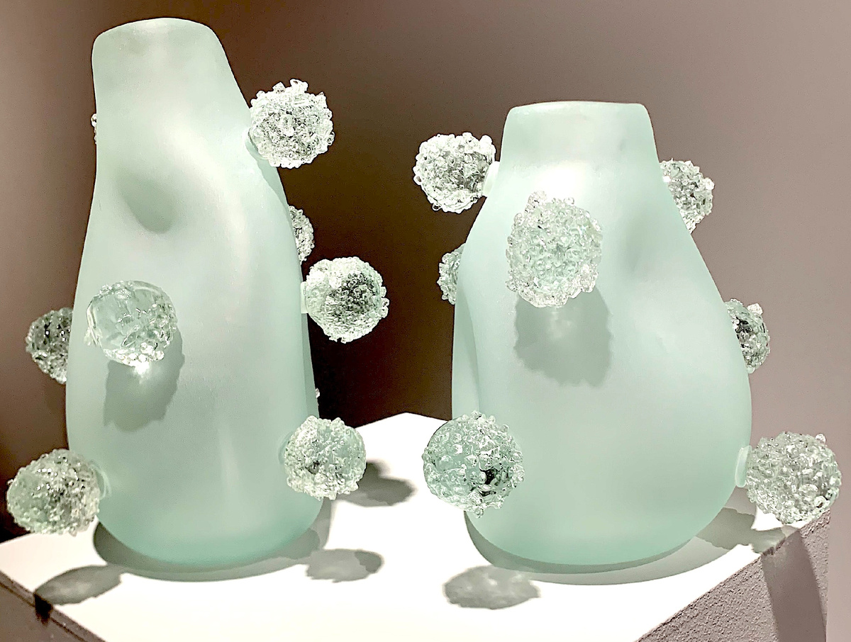 Андрей Криволапов тоже занимается осмыслением культурного наследия, но – через стекло, вернее, через как таковое свою особенную уникальную технологию отливки, когда работая с разными компонентами и добавляя их в шихту, он добивается как бы звучания материала. Каково?