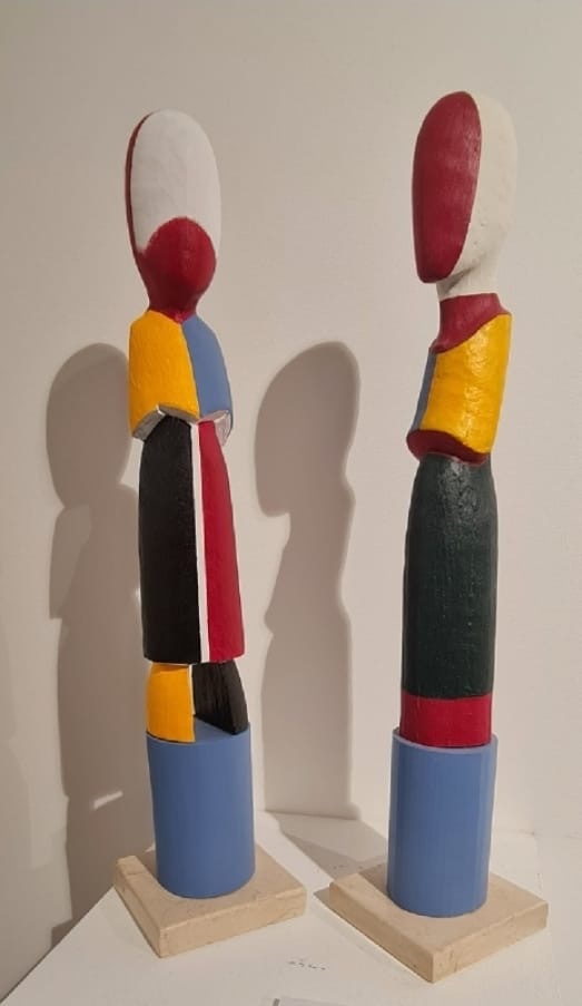 У Максима Ксуты «жанровых профессий» еще больше: он художник, фотограф и скульптор, и в поле его интересов входят живопись, каллиграфия, видео- и саунд-арт, фотография и инсталляция. Его своеобразный привет Малевичу выполнен в дереве с акрилом.